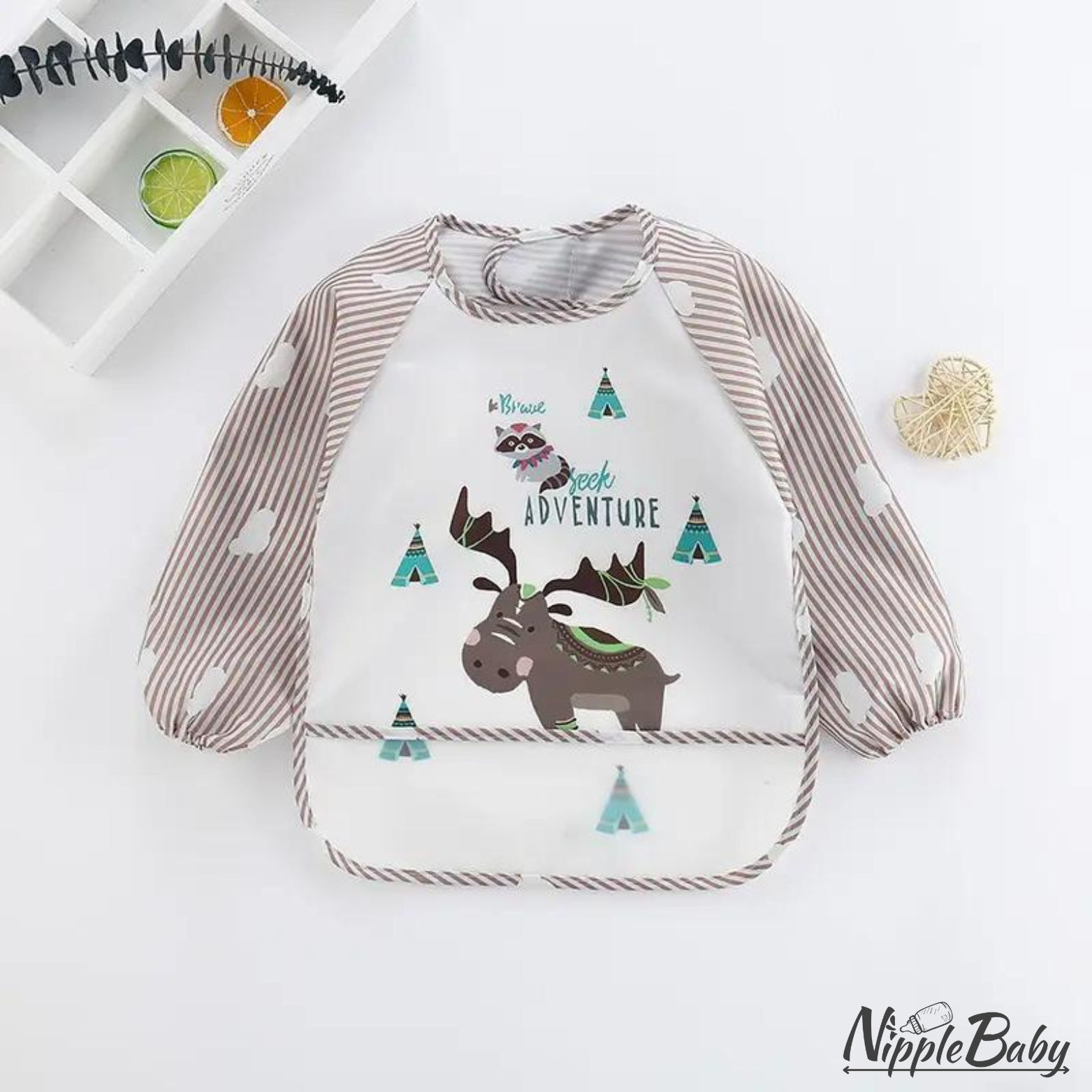 Baveta impermeabila cu maneci lungi si buzunar colector, 6-36 luni, NippleBaby