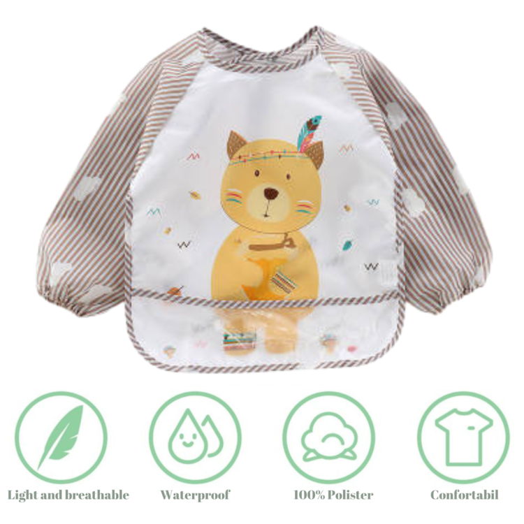 Aceasta baveta cu maneci lungi reprezinta o alegere excelenta pentru a face procesul de diversificare a alimentatiei copilului mai curat si mai distractiv.