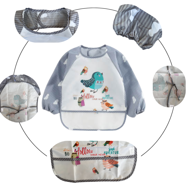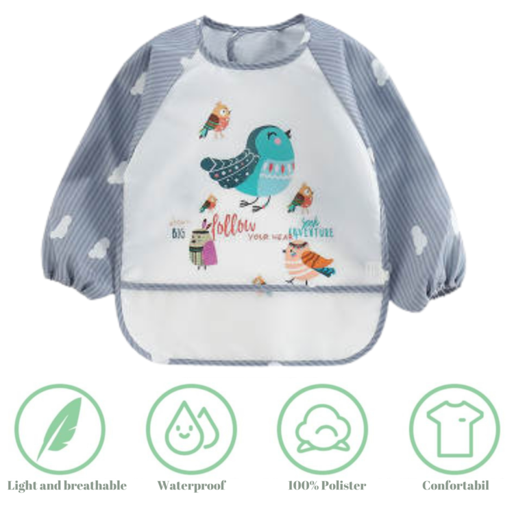 Baveta impermeabila cu maneci lungi - model pasari