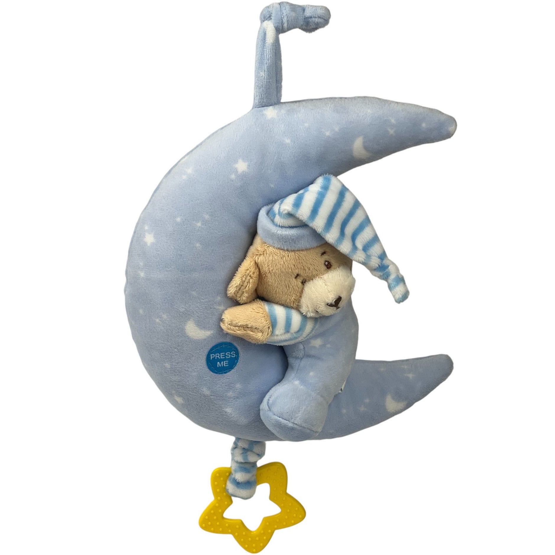 Jucarie de agățat cu cantec si lumini, lună si ursuleț albastru 23x14x24cm