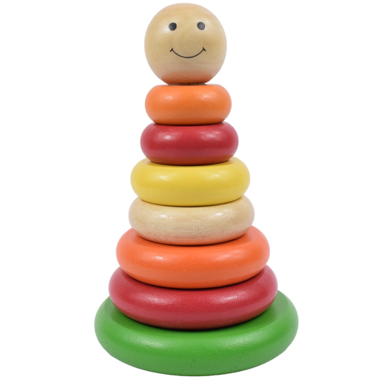 Piramida Educativa din Lemn cu 6 Inele & Varf 11.5x19cm