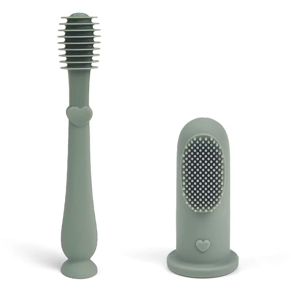 Set periuta de dinti si degetar pentru igiena dentara , Culoare verde mat