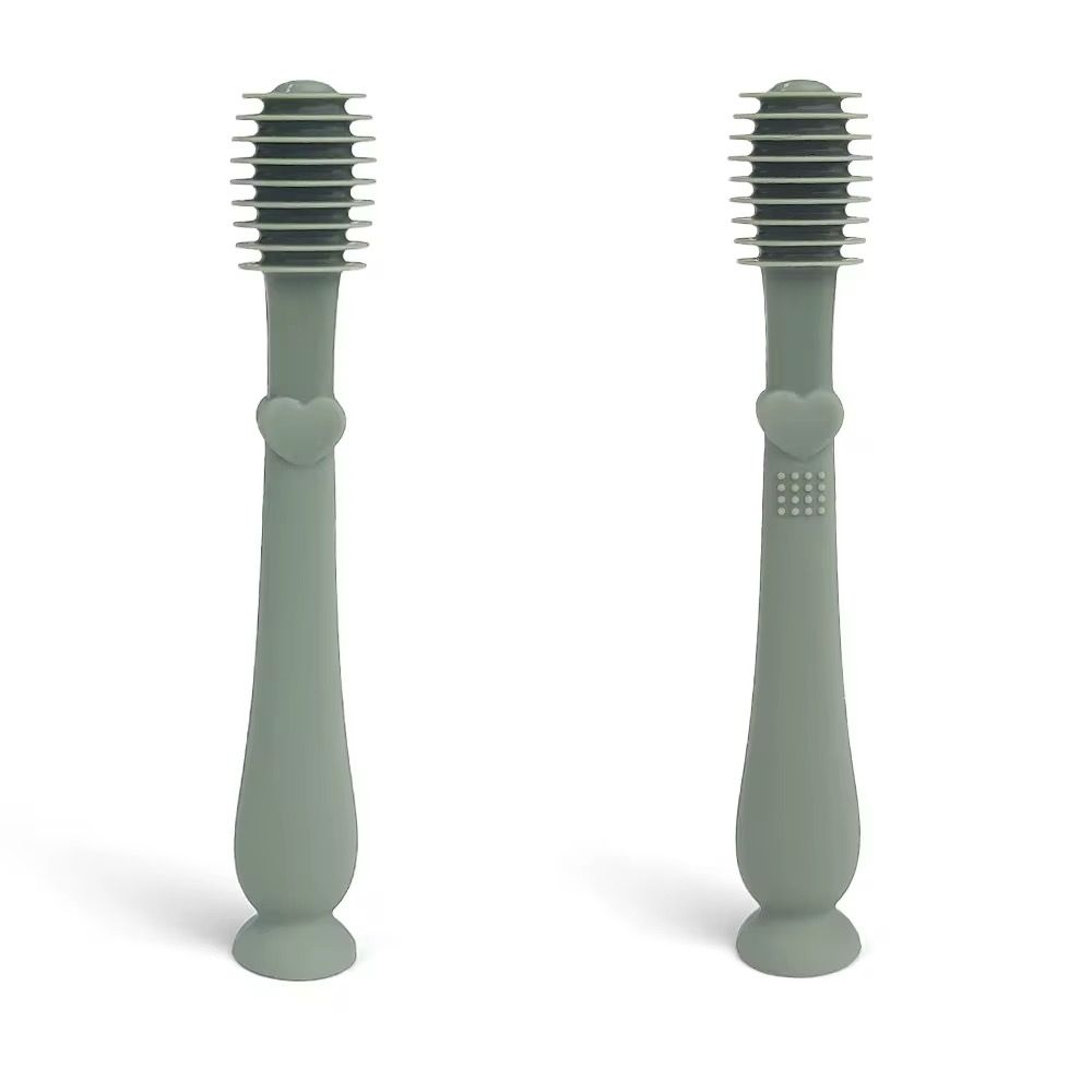 - Aceasta periuta de dinti pentru bebelusi are un design inovator cu doua componente distincte, fiecare avand scopuri multiple.