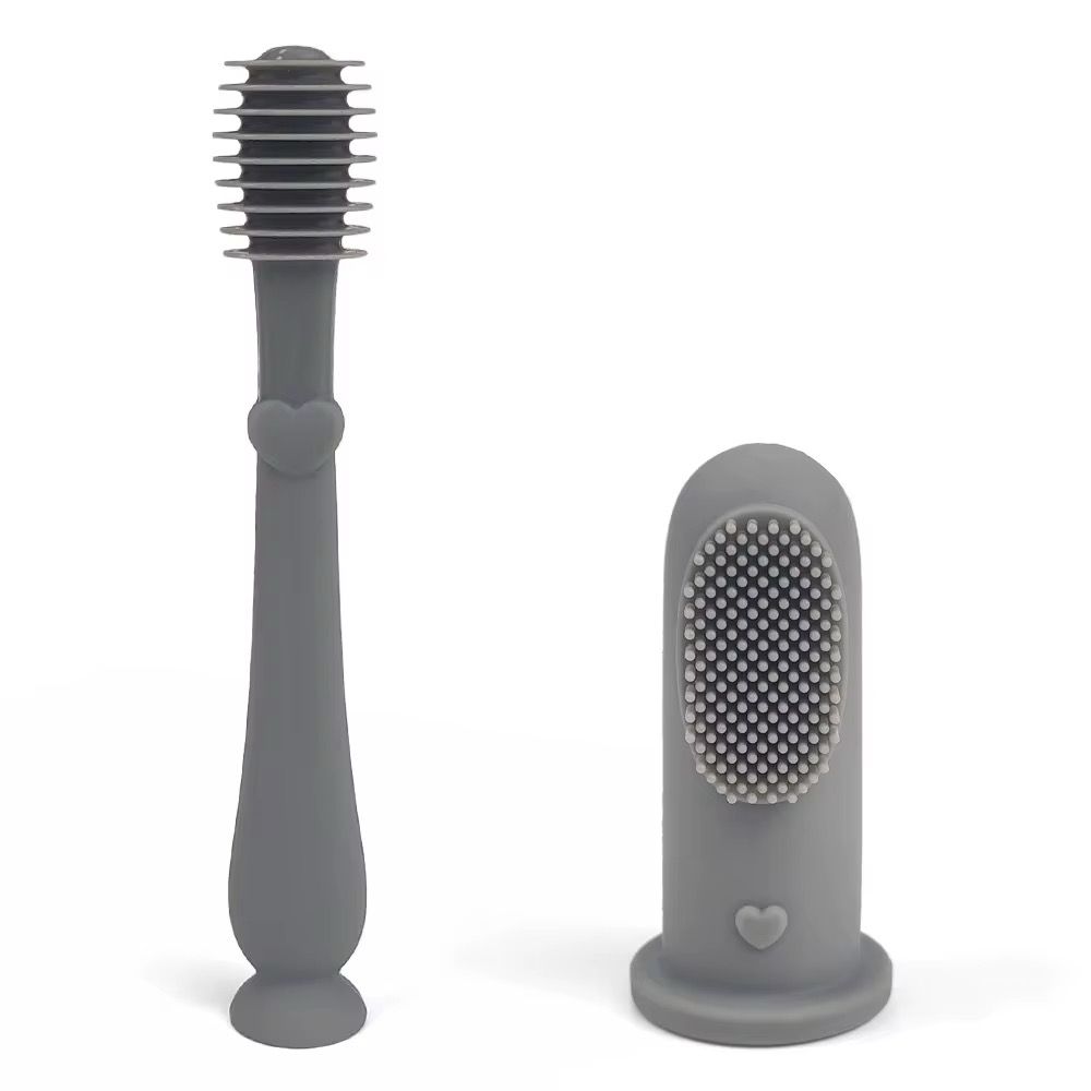 Set periuta de dinti si degetar pentru igiena dentara , Culoare gri